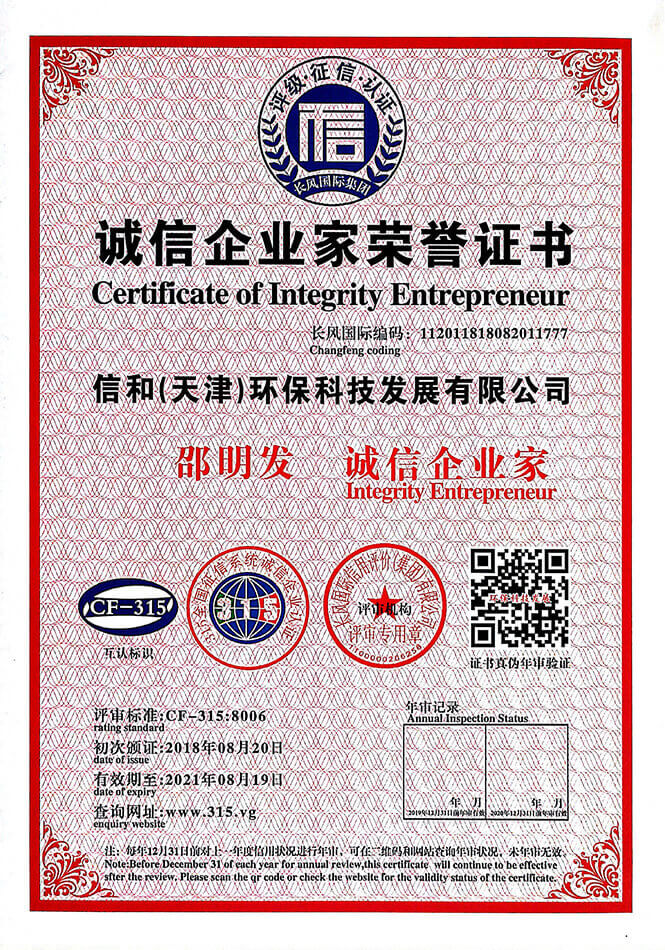 “質量就是生命”。信和重質量、守信用,被中國誠信品牌萬里行推薦“誠信示范單位”、“AAA資信等級”、“AAA級誠信經營示范單位”、“誠信經理人榮譽證書”、“誠信企業家榮譽證書”、“中國產品質量放心達標企業”、“誠信品牌聯盟會員單位”、“中國質量誠信AAA級品牌企業”、“中國百強優秀企業”、“節能環保推廣產品”、“全國科技創新企業”等榮譽稱號。